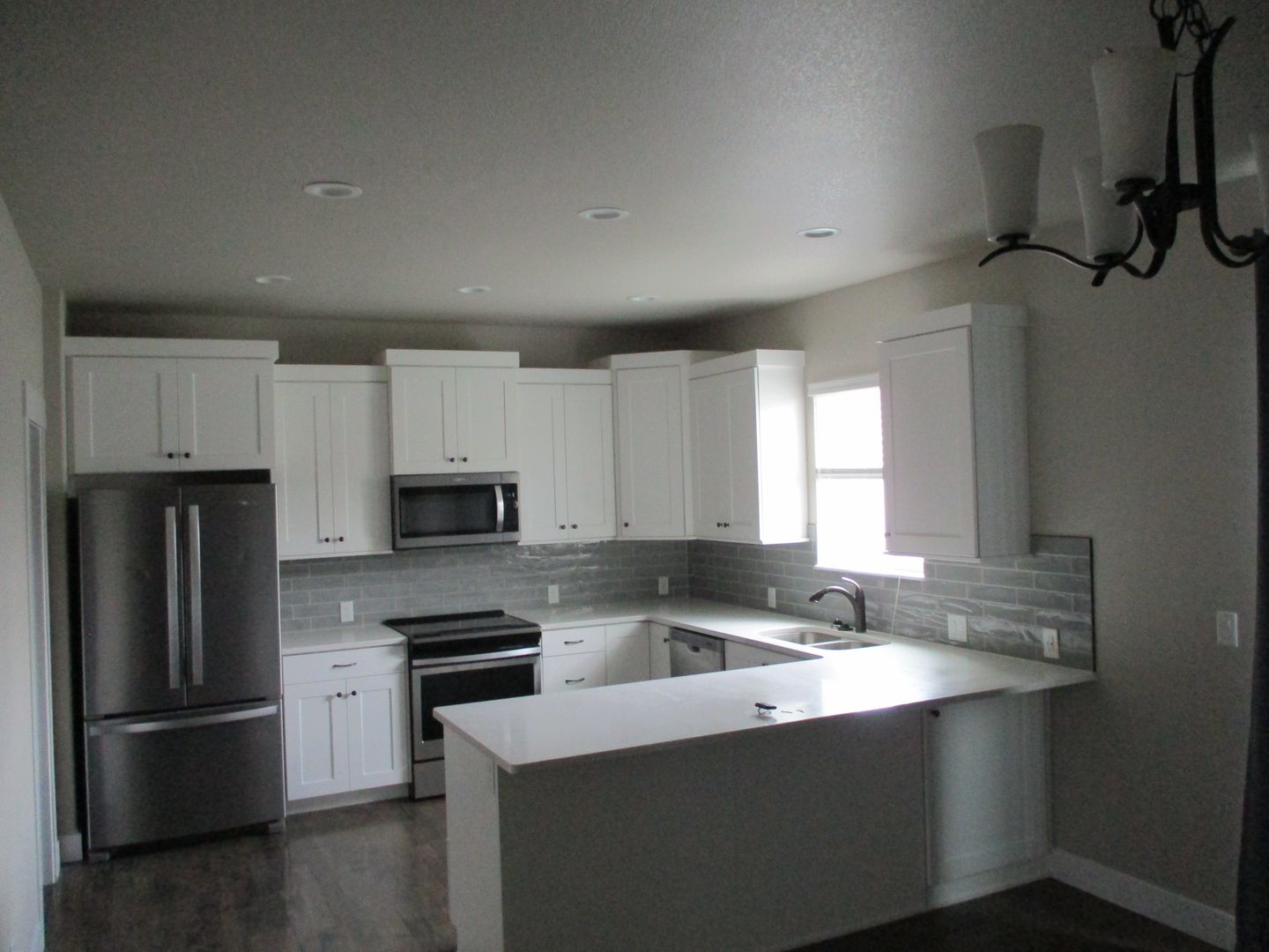 Bright and open kitchen with range, refrigerator, dishwasher µowave